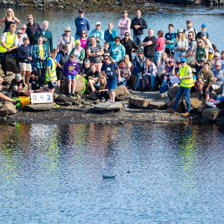 © 2025 World Stone Skimming Championships. A registered trademark of Eilean Eisdeal. All rights reserved. Eilean Eisdeal is a registered charity in Scotland (SC027102). A company limited by guarantee, registered in Scotland (SC178838).